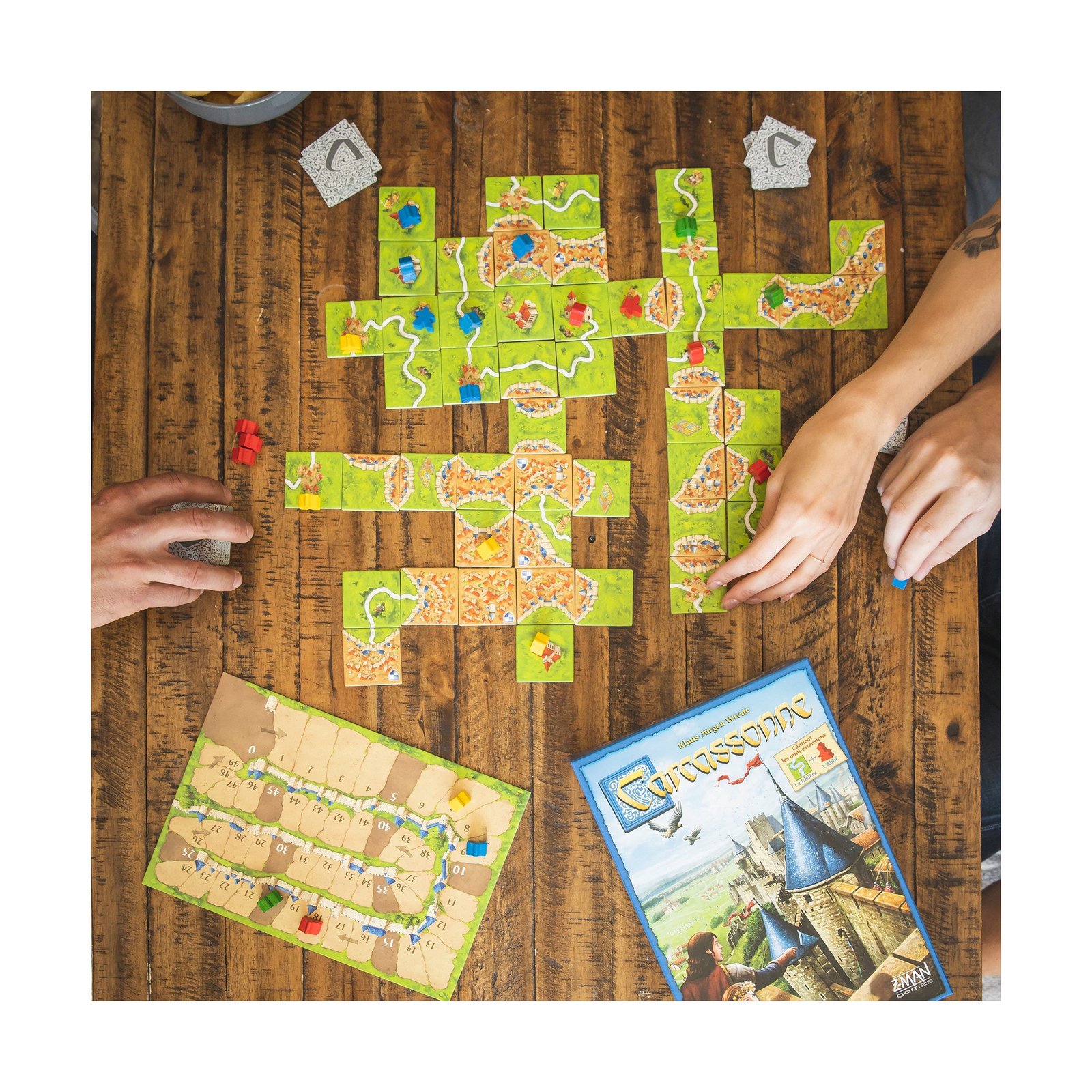 In Carcassonne, players build the area surrounding this impressive city, one tile at a time. They then place a follower on fields, cities, roads or monasteries in order to score as many points as possible. These followers will become knights, monks, farmers and thieves, depending on where they are placed. No matter their function, the player who will most cleverly use their followers will win the game. Entirely redesigned and modernized, this edition includes two expansions: The River and The Abbot.