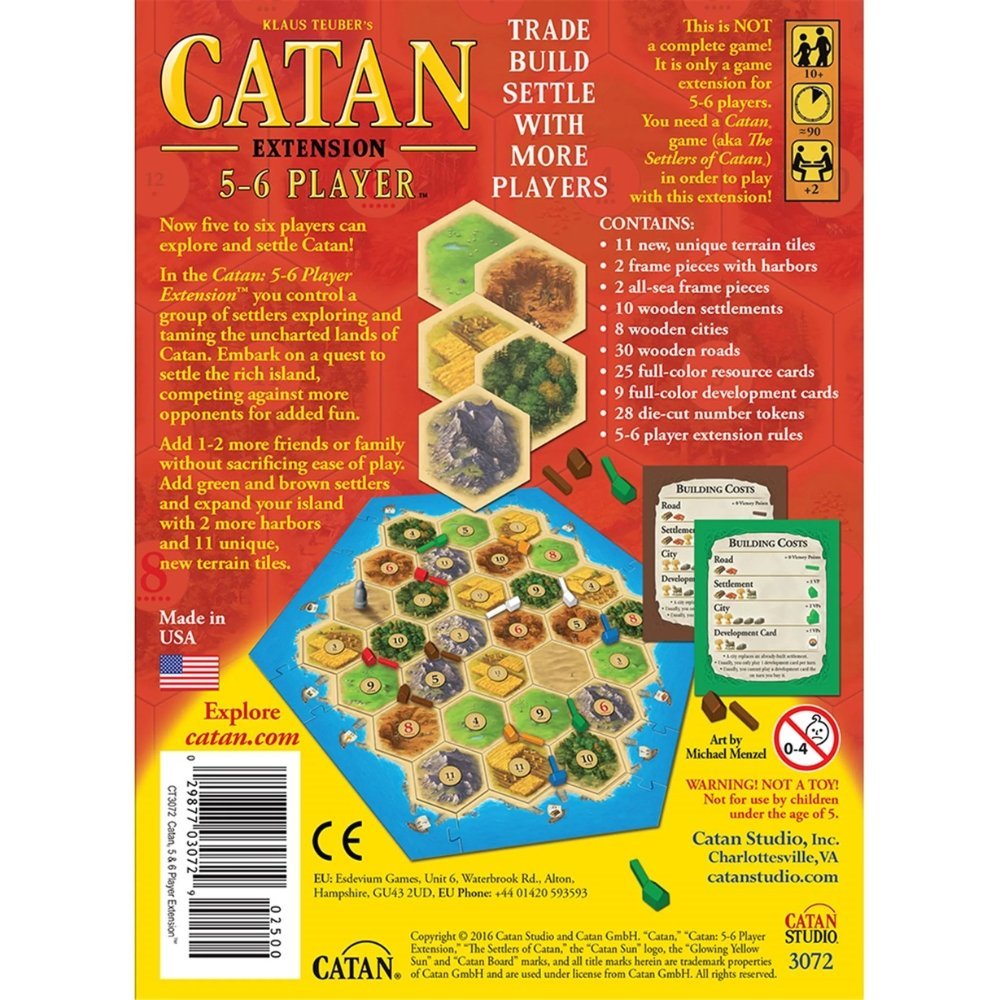 The Catan 5–6 Player Extension allows you to expand your base game of Catan and bring more players into the fun. Perfect for larger families and gaming groups, this official expansion adds extra components and revised rules to accommodate up to six players.