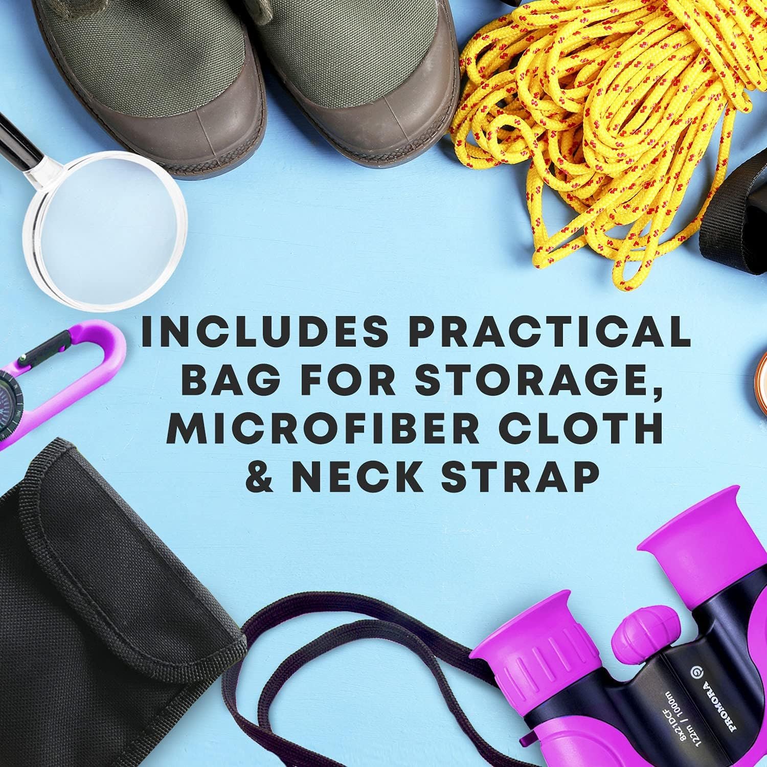 - Designed with your child’s safety in mind, these kids binoculars feature an anti-friction, shockproof rubber coating to absorb impact, and non-slip grip perfect for little hands.