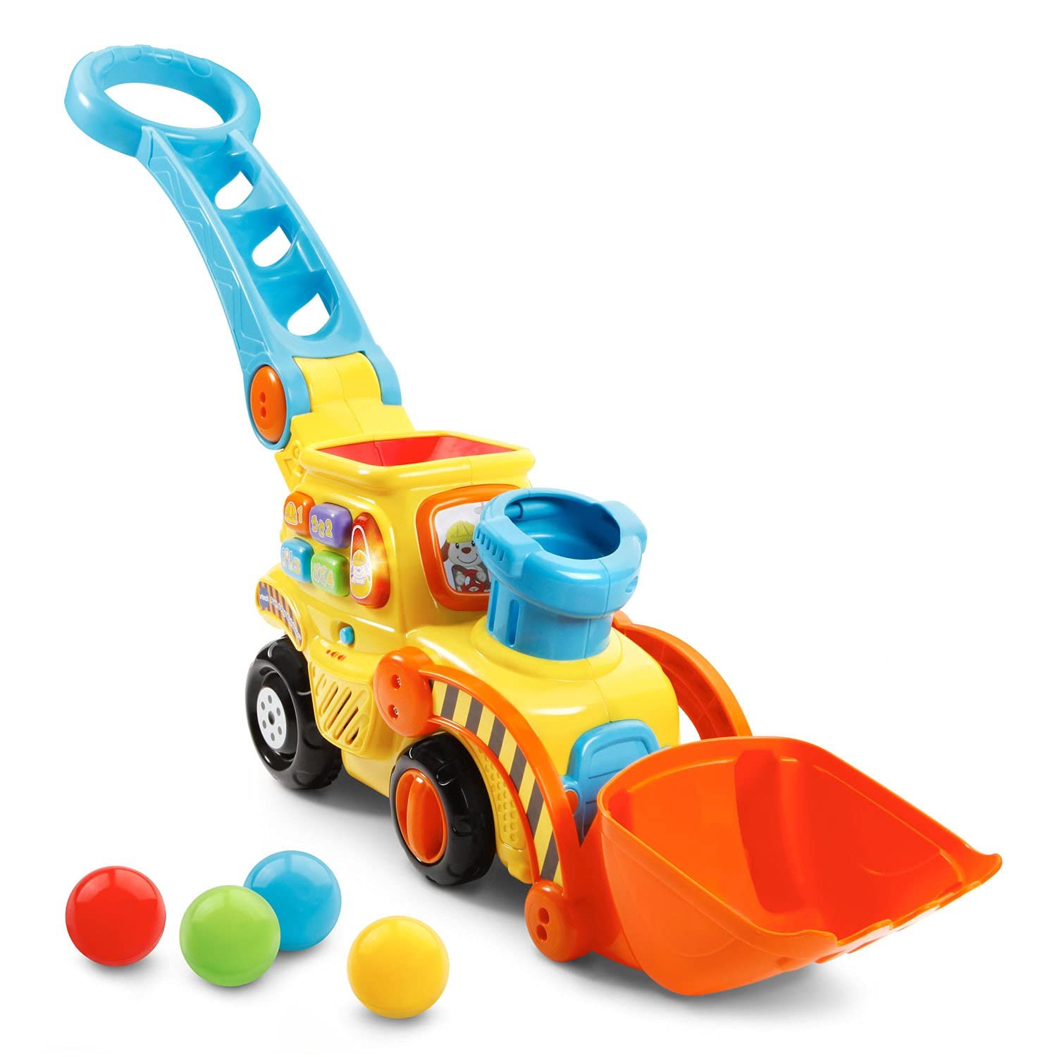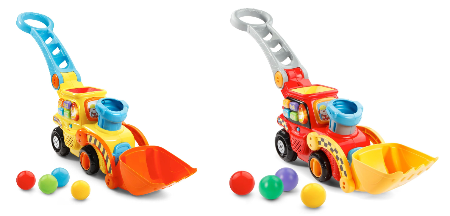 - Push the handle to roll the bulldozer across the floor and watch it pop balls out of the chimney into the bucket