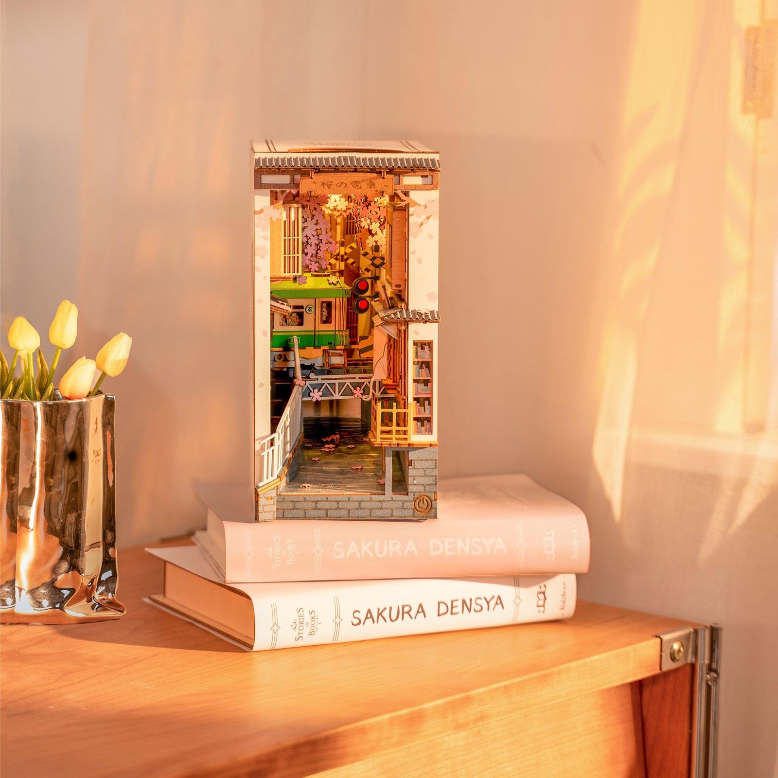 Add this crowd favorite and be transported halfway across the world with our Sakura Tram Nook kit. This stunning piece is sure to capture your imagination with its Japanese architecture and cherry blossom trees. The attention to detail is remarkable, with intricate architecture, airy cherry blossom trees, and a delightful tram that will transport you to another country. Check out why everyone loves our Sakura Tram book nooks!